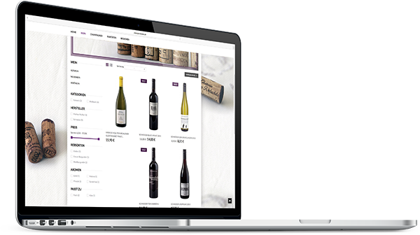 Während Architektur und das grundlegende Design durch eine klare und schnörkellose Linienführung überzeugt um den Blick auf das Wesentliche zu lenken, greifen einzelne grafische Elemente wie z.B. die Header der einzelnen Bereiche den Genussmoment des Weines auf. Immer wiederkehrendes Element ist der Korken, der durch Form & Farbe immer eindeutig zuordenbar ist und dem Kunden so als intuitive Standortbestimmung dient.